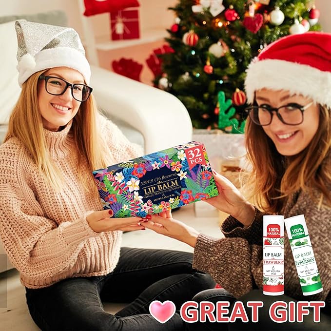 32 Pack Lip Balm, Natural Lip Balm Bulk with Vitamin E and Coconut Oil, Bulk Lip Balms for Dry Lips-16 Flavors