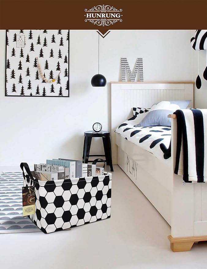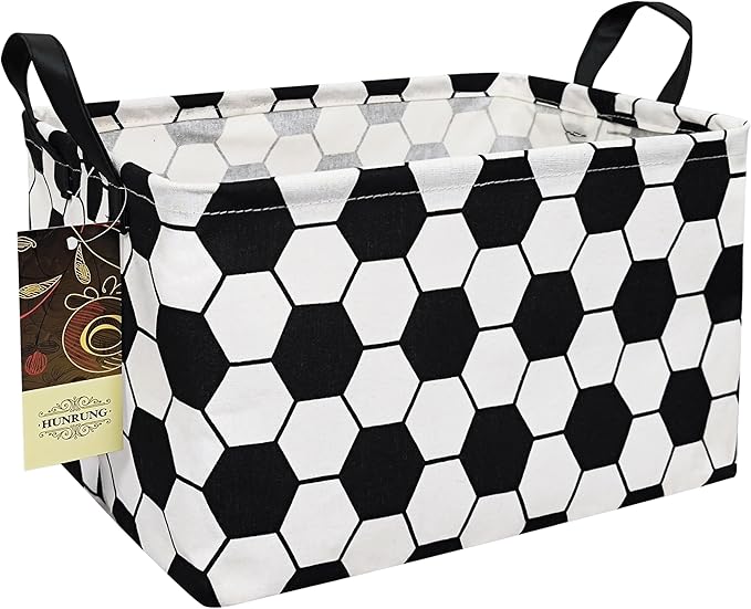 HUNRUNG Rectangle Storage Basket Cute Canvas Organizer Bin for Pet/Children Toys, Books, Clothes Perfect for Rooms/Playroom(REC-Football)