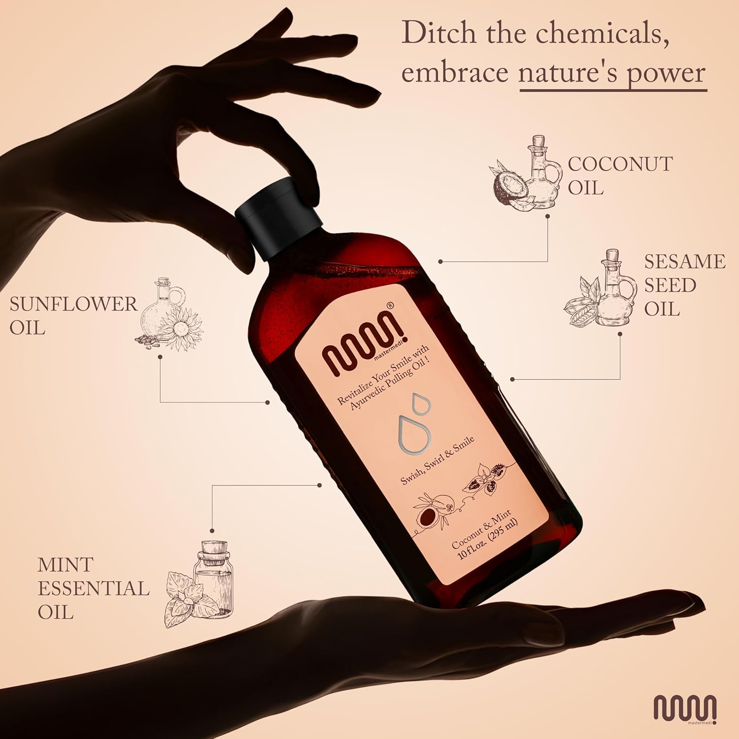 - Coconut Oil Pulling Mouthwash - This Pulling Oil with mild Minty flavor helps maintain oral hygiene. Fractionated coconut oil mouthwash helps freshen breath, maintain healthy gums, strengthens & whitens teeth; helps with bad breath; cleanses your mouth; support oral & gums health of the mouth.