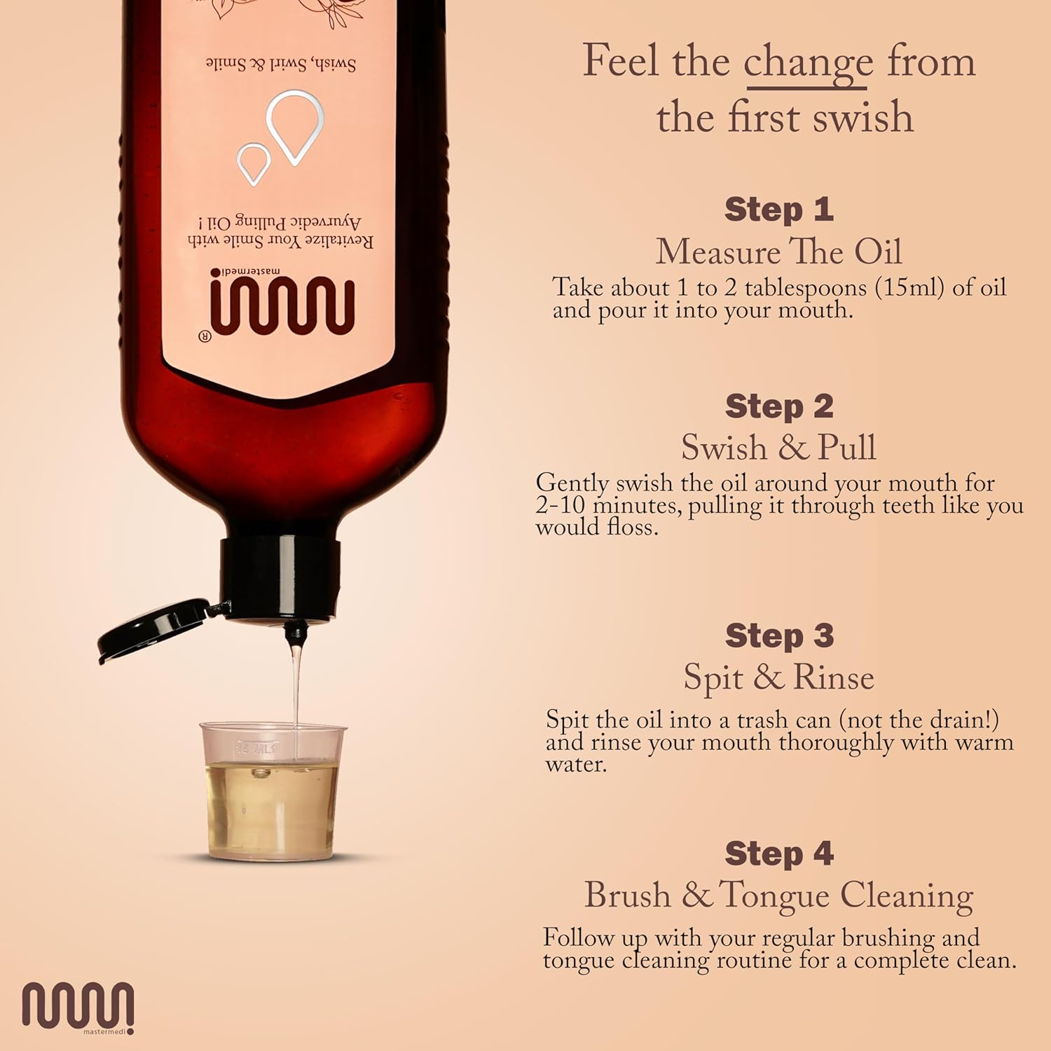 - How To Use - Simply pour 15ml of pulling oil into your measuring cup & swish for 2 minutes to 10 minutes. Do NOT swallow. Spit the oil in a bin to avoid clogging of pipes. Immediately after brushing your teeth.
