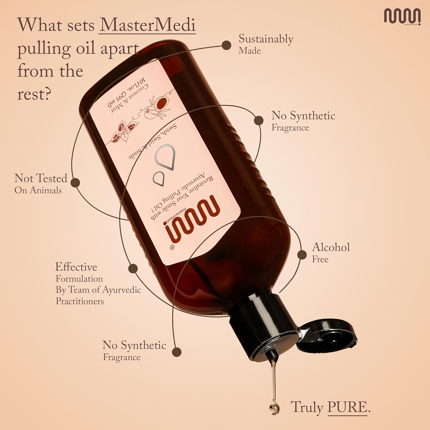 MasterMedi Coconut and Peppermint Oil Pulling (10 Fl.Oz), Mint Oil Pulling Mouthwash, Alcohol Free Natural Coconut Oil Pulling for Teeth Whitening,Fresh Breath and Healthier Gum (Pack of 1)