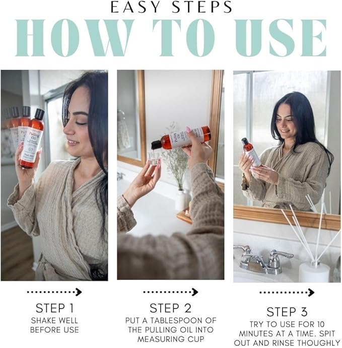 - Complete Pulling Kit Experience – Each package includes coconut mint pulling oil for teeth, a measuring cup, and tongue scraper—everything needed for effective coconut oil teeth pulling in one system.