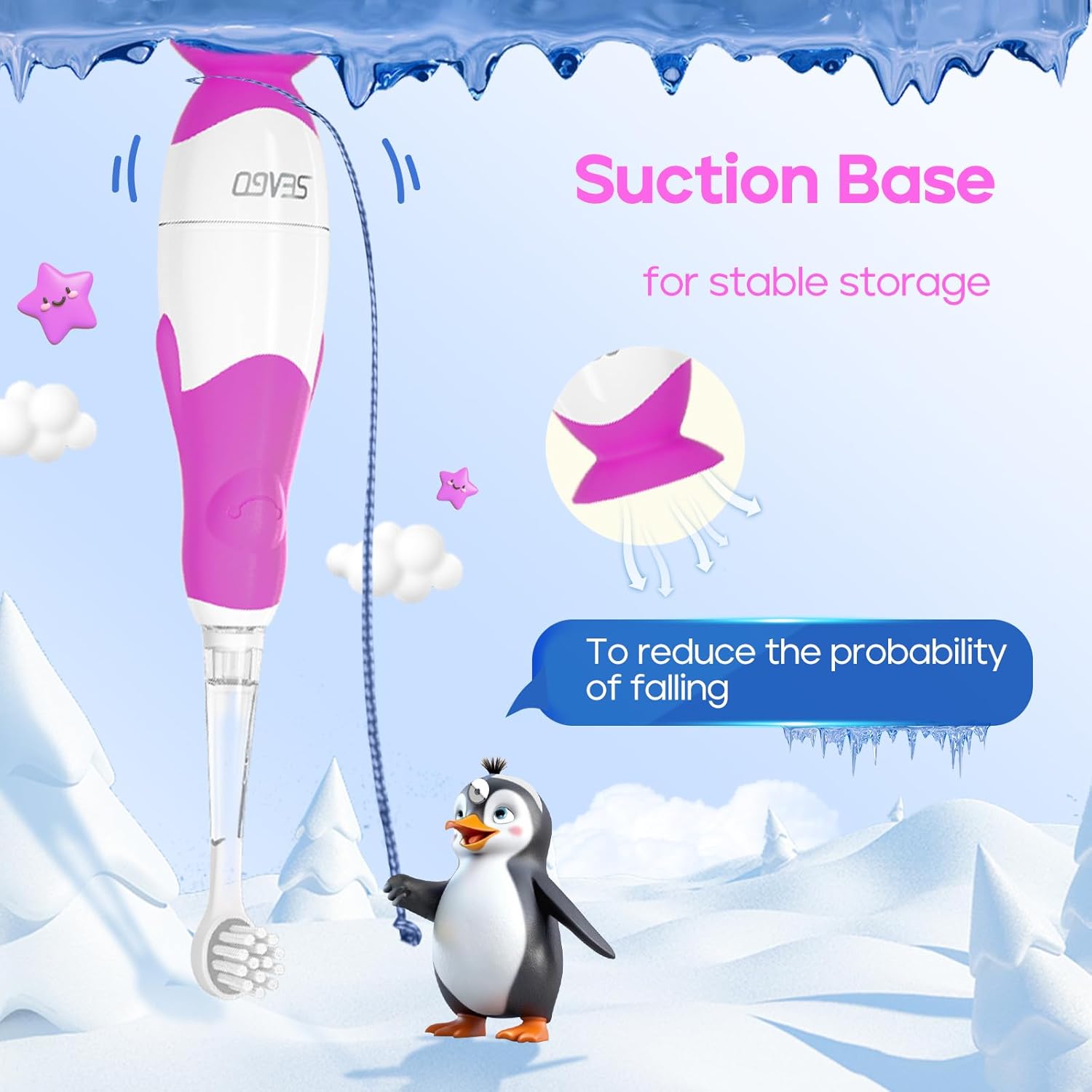 SEAGO Toddler Electric Toothbrushes for Baby Ages 0-3 Years, Baby Toothbrush with Smart Timer and Suction Base, 4 Replacement Brush Heads SG-513(Purple-C)