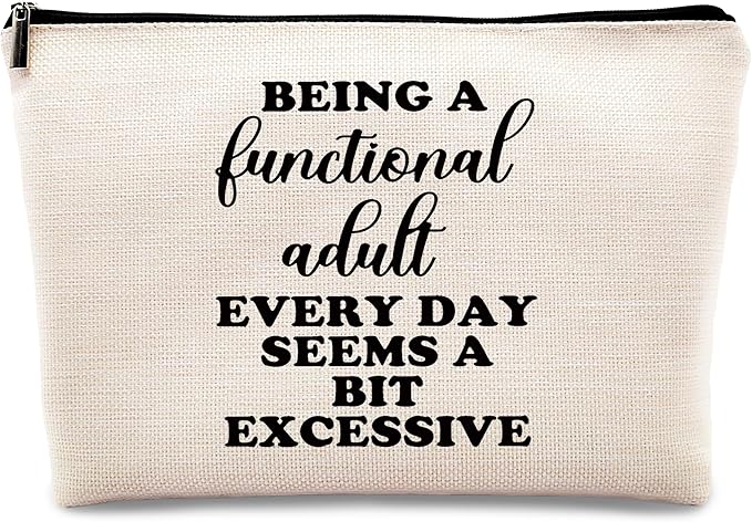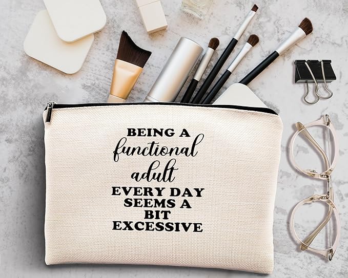 kdqua Funny Adult Humor Gifts for Women Makeup Bag, Being a Functional Adult Everyday Seems a Bit Excessive Linen Cosmetic Bag Zipper Pouch Travel Toiletry Bag, Gifts for Women Girls Sister Sisters