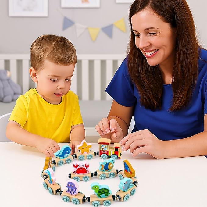 - Magnetic Animals Train Set: Our set features 11PCS small magnetic trains with a rich variety of styles, allowing toddlers to easily distinguish between different sea animals. A perfect Montessori-inspired activity for enjoyable and educational play.