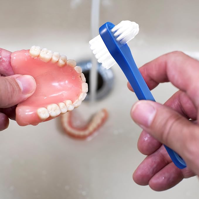 - Durability and Reliability: each denture cleaner toothbrush is mainly made of robust plastic material; Ideal for the routine rigors of denture maintenance, secure in its strength, this brush promises to keep your dentures bright and spotless