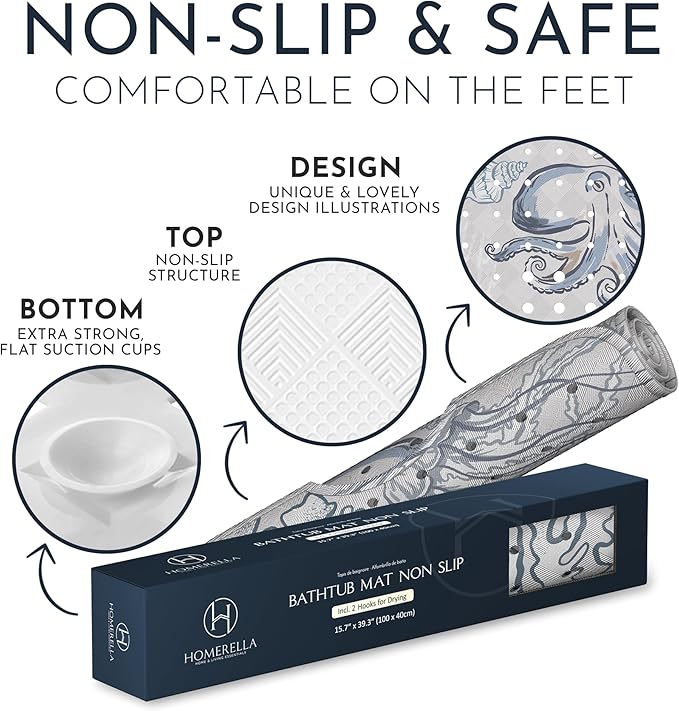 - NO MORE SLIPPING! The Homerella anti slip bath mats for tub kids provide a secure grip, even when using shampoo & soap. Enhance your bathing experience with these bath mats for bathroom non slip tub today!