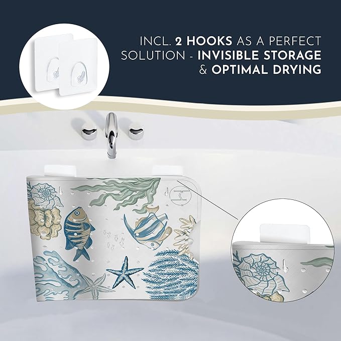 - EASY TO DRY! HOOKS INCLUDED - At last, the wet mat is no longer on the edge of the bath tub! Thanks to 2 self-adhesive hooks that can be removed without leaving any residue, the anti-slip bath mat can dry perfectly!