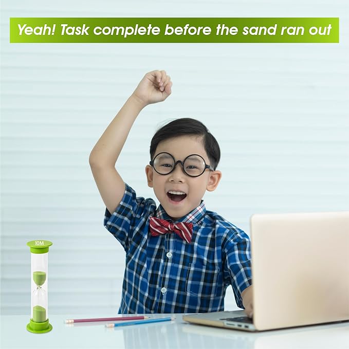 Sand Timer for Kids - 10 Minute Set of 4 Hour Glass - Green Color- Acrylic Covered for Classroom, Home & Kids Room