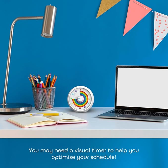 - Kids Time Management: How to quickly help children know time? How to help young people improve efficiency? Visual timer is the most ideal tool.set time by rotating of the rainbow pattern, as the rainbow becomes smaller and disappears, Kids will understand time and they feel time, and complete tasks or learn more efficiently.