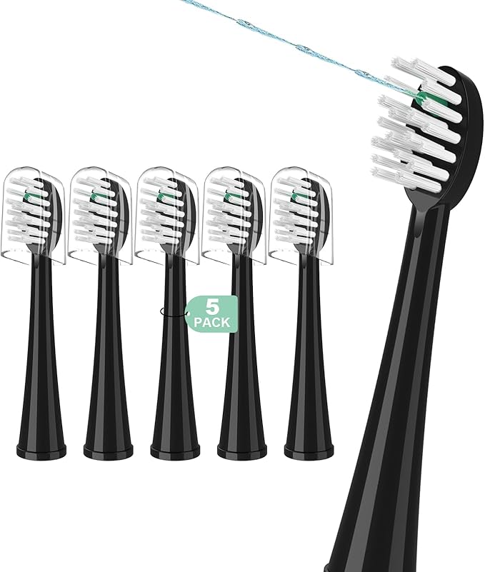 Replacement Brush Heads for WaterPik Sonic-Fusion 2.0 Flossing Toothbrush (SF-03/SF-04) and Sonic-Fusion Flossing Toothbrush (SF-01/SF-02),5 Count Black with Covers