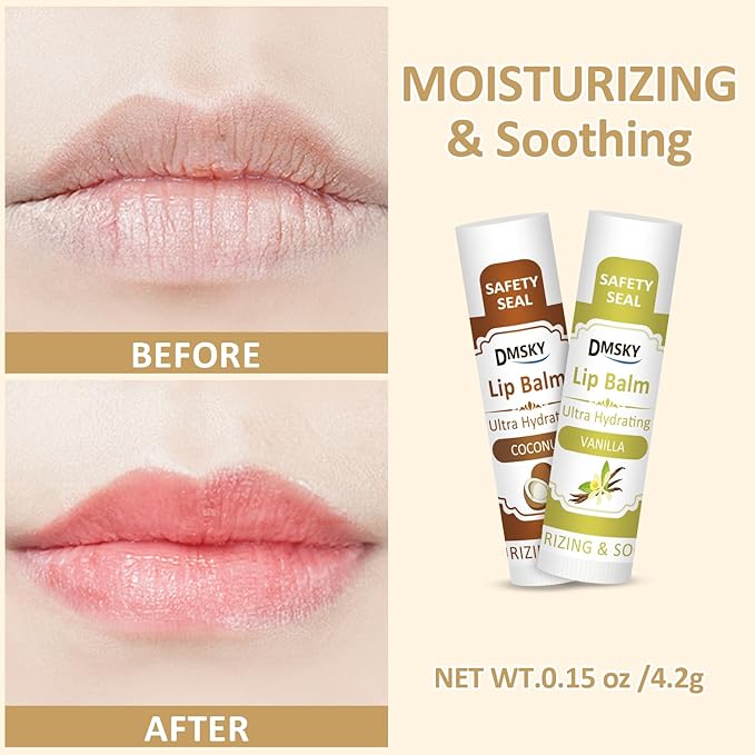 - Moisturizing & Soothing: Formulated with coconut oil and Vitamin E, our lip balm delivers deep, long-lasting moisture. It effectively soothes dry, chapped lips, relieves flakiness, and restores your lips' natural softness and healthy glow.