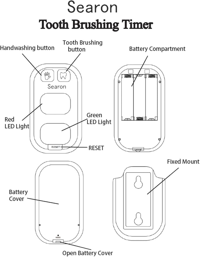 - [Hand Washing Teeth Brushing Timer] 20 seconds for washing hands and 2 minutes for brushing teeth, Batteries operated by 3xAAA batteries(NOT Included)