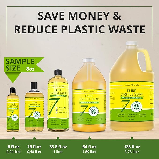 Pure Castile Soap - No Palm Oil, GMO-Free - Gentle Liquid Soap For Sensitive Skin & Baby Wash - All Natural Vegan Formula with Organic Carrier Oils (8 Fl Oz, An Unscented)