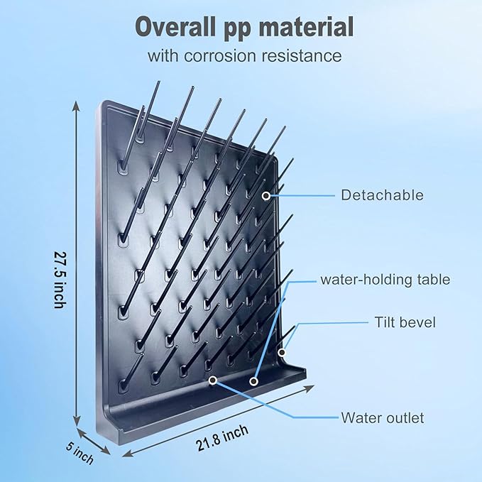 - Exceptional drying capability: Help to dry tubes, beakers, flasks, glassware, and other lab wares; With a tray hole at bottom and a outlet hose for better water drain and leak proof