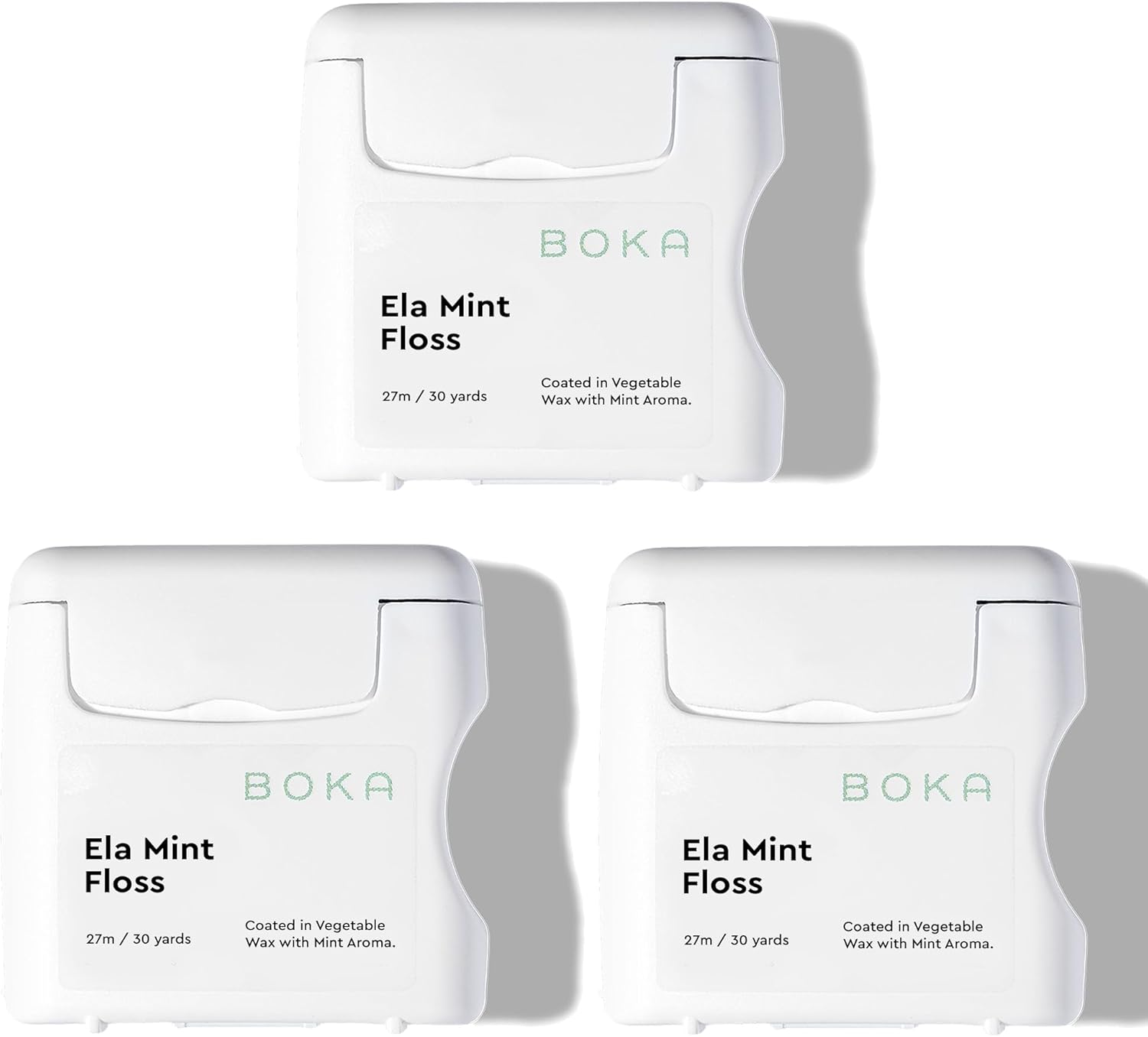 Boka Ela Mint Expandable Woven Dental Floss, Made from Natural Vegetable Wax, Teflon-Free and Petroleum-Free, 30 Yards of Waxed Floss (Pack of 3)