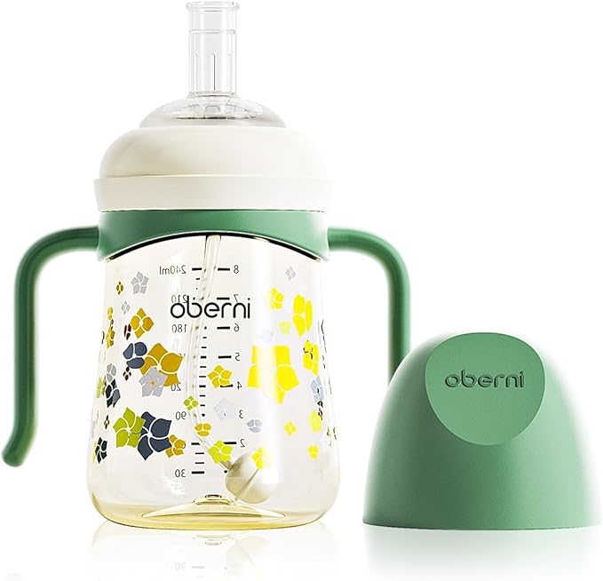 PPSU No Spill Sippy cups,Weighted Straw Toddler Water Bottle with Handle,Spill Proof Toddler Cup with Leakproof Spout for Baby 6-12 Months and Toddlers 1-3 (8 Ounce, Green, 1 Pack)