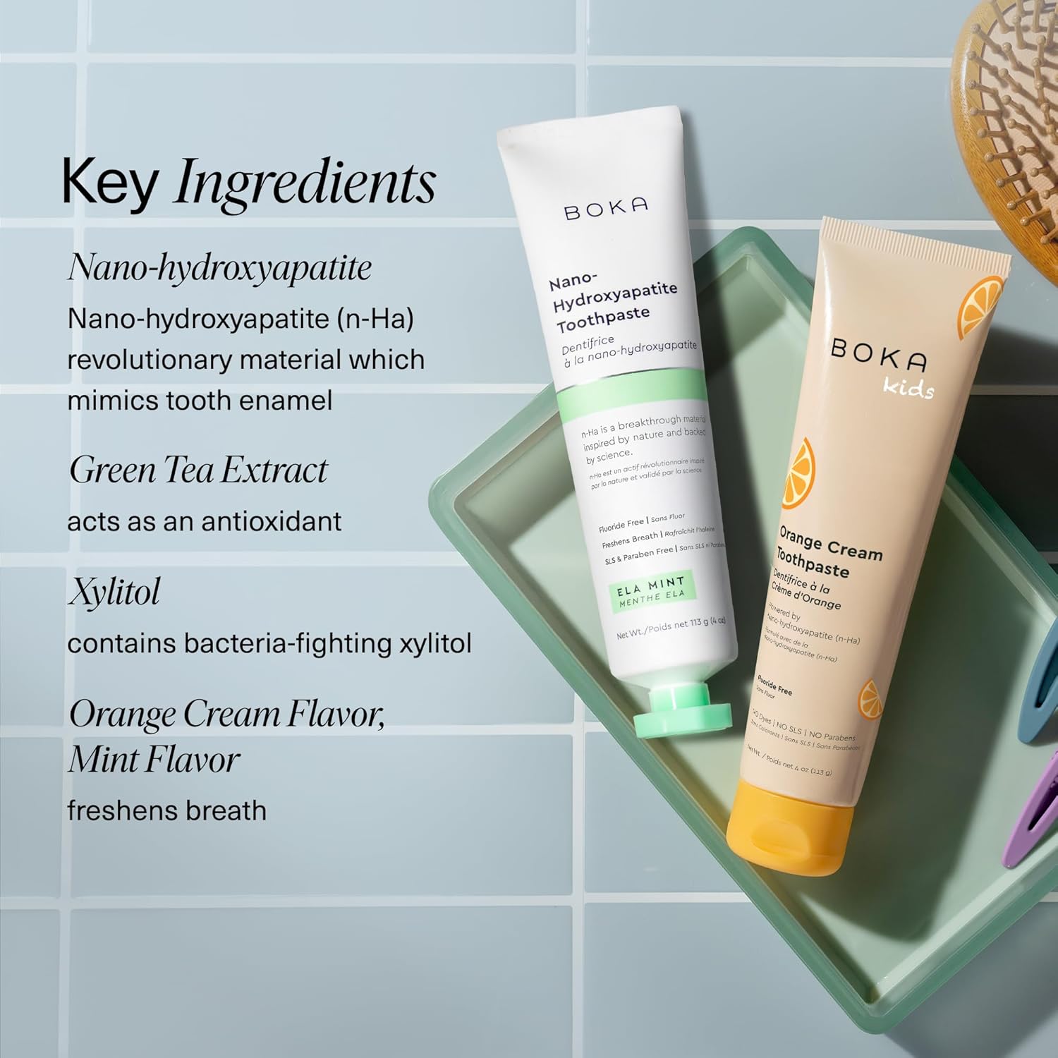 Boka Fluoride Free Toothpaste Nano Hydroxyapatite Toothpaste - Ela Mint, Orange Cream Flavor, 4 oz 2Pk US Manufactured