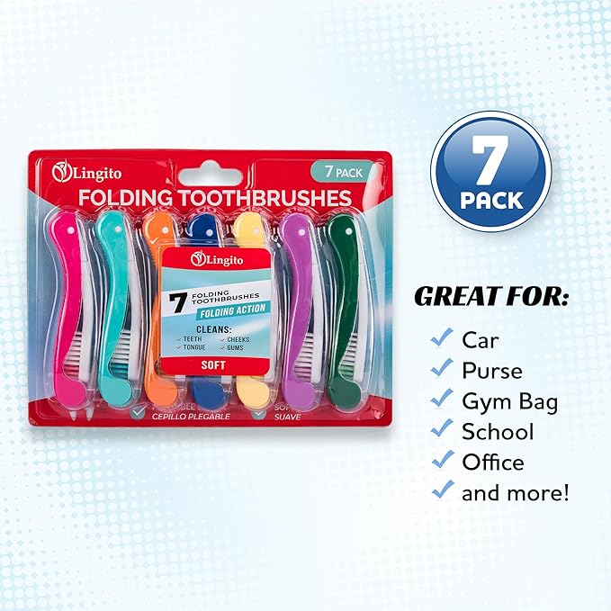 - BRIGHTEN UP YOUR SMILE: Our 7-pack of folding toothbrushes features soft bristles designed to give you a thorough clean. These bristles help prevent cavities, strengthen gums, and promote a healthy brushing routine for both adults and children, ensuring everyone can enjoy a confident and brighter smile.