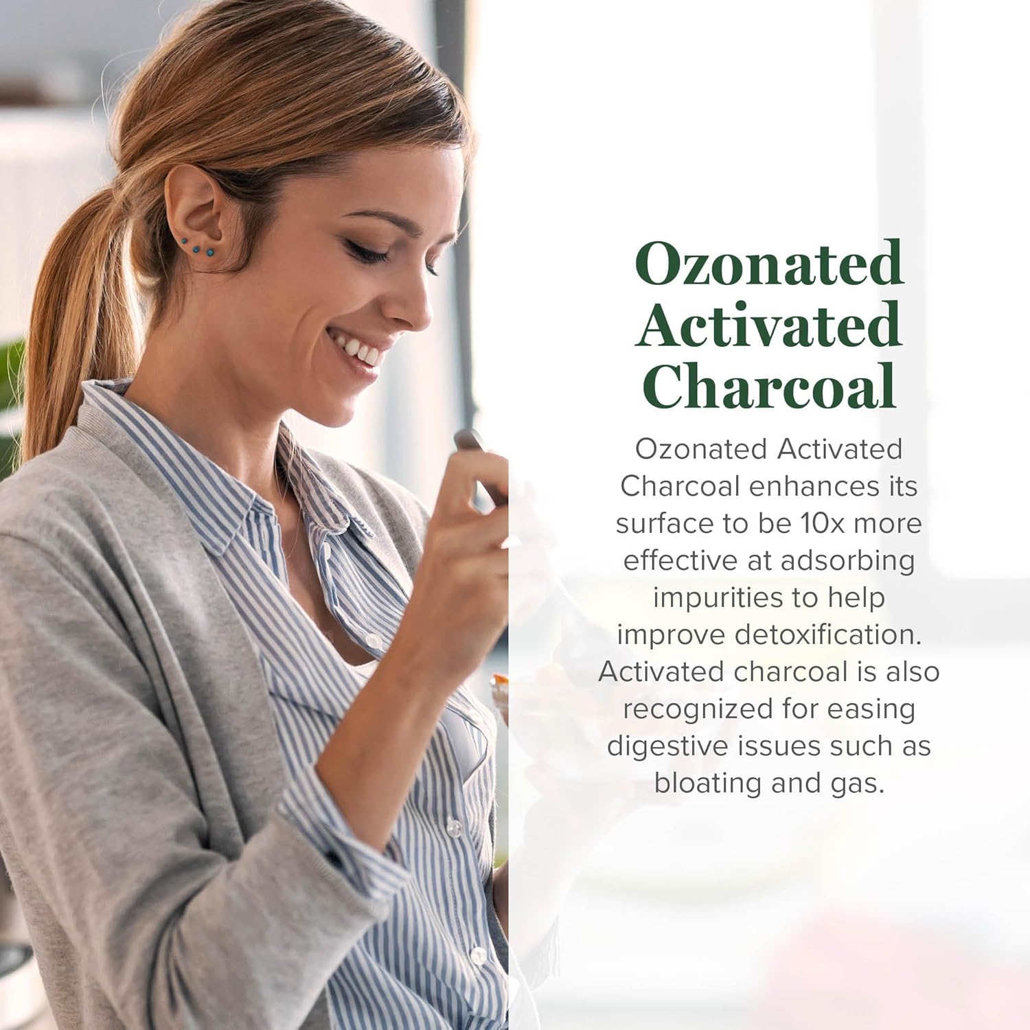 Global Healing Center - Ozonated Activated Charcoal Powder - Advanced Digestive Detox That Adsorbs Internal Unwanted Compounds - Helps Relieve Occasional Gas Discomfort - 60 Activated Charcoal Pills