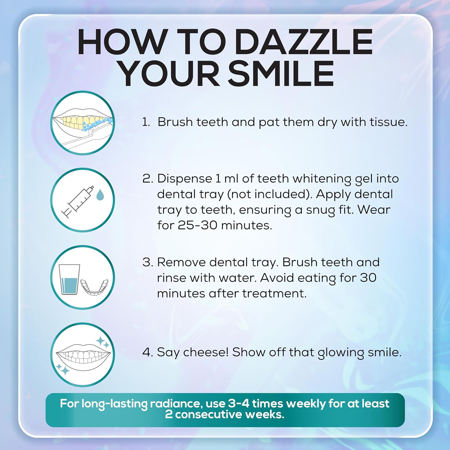 - Effortless At-Home Whitening: Each whitening teeth syringe features a dosage line for precise application. Our gel is compatible with any dental or mouth tray and can also be applied directly to your teeth using a cotton swab.