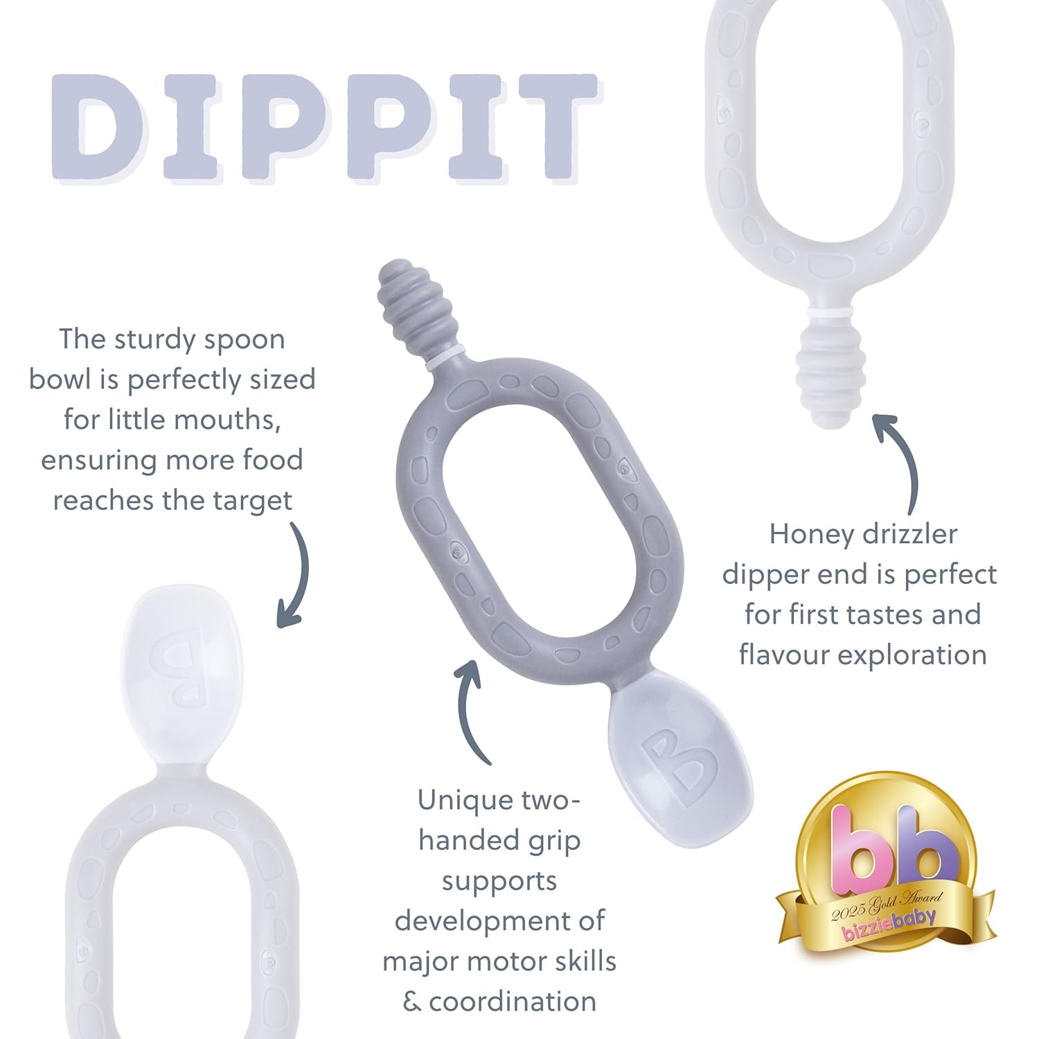 - Original 2-in-1 Design - The Dippit helps babies transition from dipper to spoon seamlessly by enabling them to explore first flavors with the anti-gag, wide neck, textured dipper end. When ready, flip it to use the spoon for scooping!