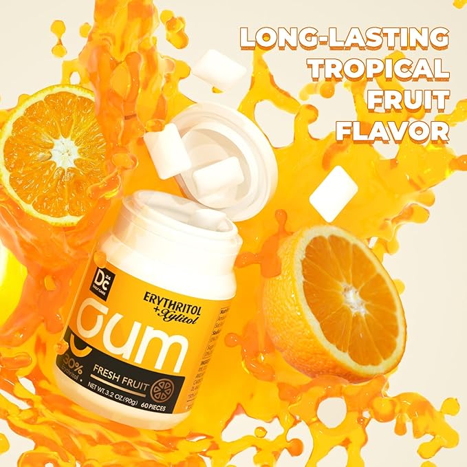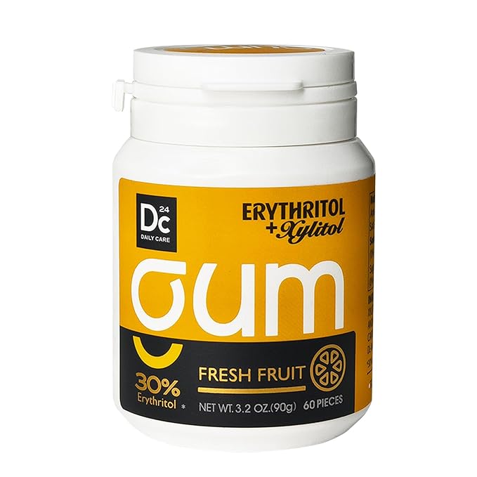 DC24 DAILY CARE Xylitol Chewing Gum with Erythritol, Aspartame Free & Sugar Free Gum for Dry Mouth, Low-Calorie, Sugarless, Fresh Fruit, 60 Pieces (Pack of 1)
