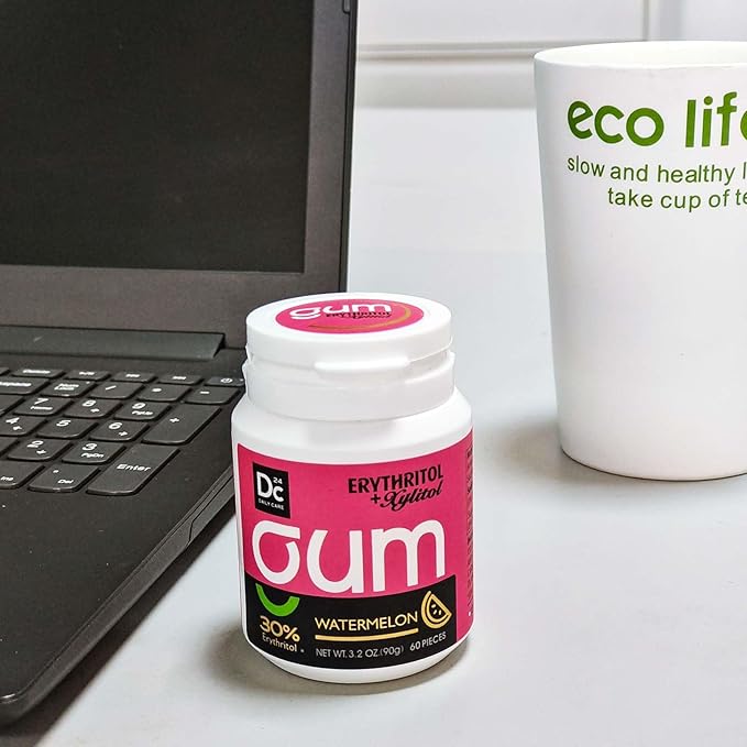 DC24 DAILY CARE Xylitol Chewing Gum with Erythritol, Aspartame Free & Sugar Free Gum for Dry Mouth, Low-Calorie, Sugarless, Watermelon, 60 Pieces (Pack of 1)