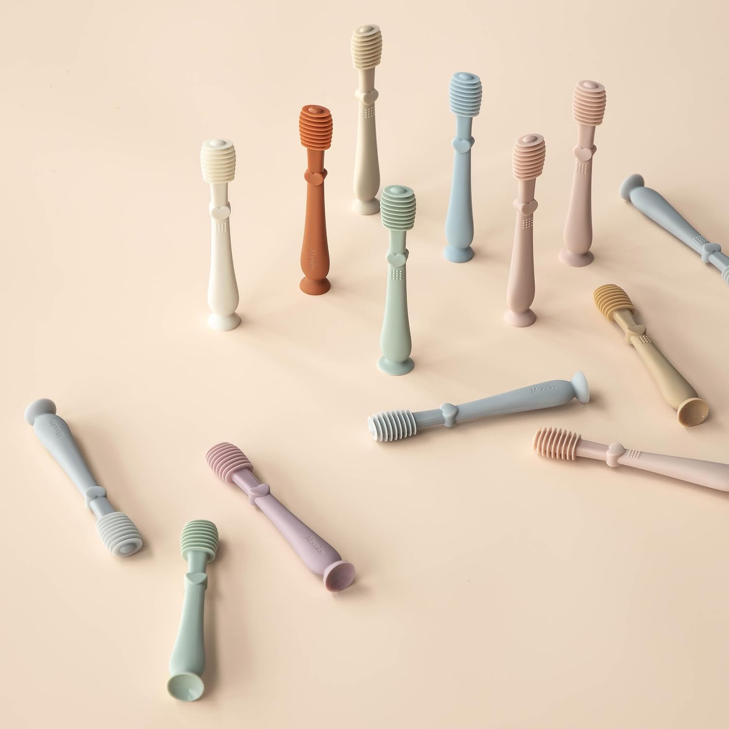 Moonkie Baby Tongue Cleaner, Toddler Toothbrush, Baby Oral Cleaner Newborn Kit for 3 Months+, 2 Pcs (Clay/Ivory)