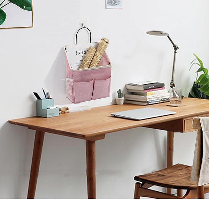 2pcs Wall Hanging Storage Bag,Wall Hanging Organizer Bags with Pockets, Wall Organizer Storage for Dormitory Bathroom Bedroom Kitchen(Pink)