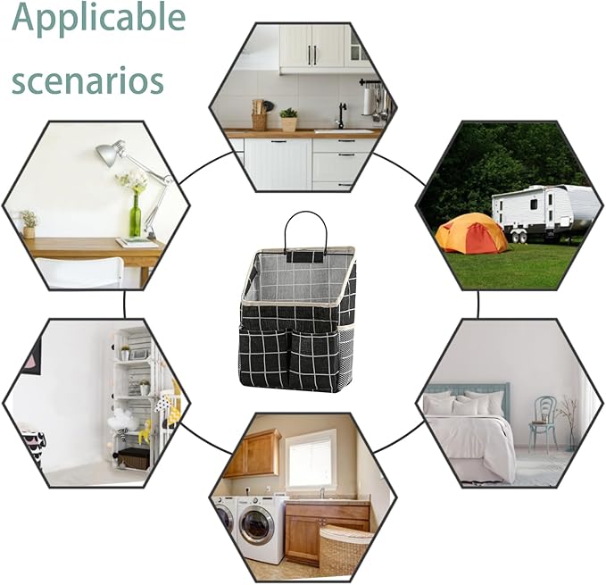 2pcs Wall Hanging Storage Bag,Wall Hanging Organizer Bags with Pockets, Wall Organizer Storage for Dormitory Bathroom Bedroom Kitchen(Black Grid)