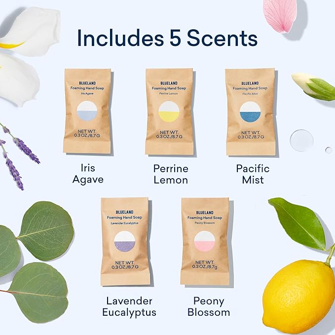 BLUELAND Foaming Hand Soap Refill Tablets, 10-Pack, Variety Pack Scents, Eco Friendly Cleaning Products, 10 x 9 Fl oz