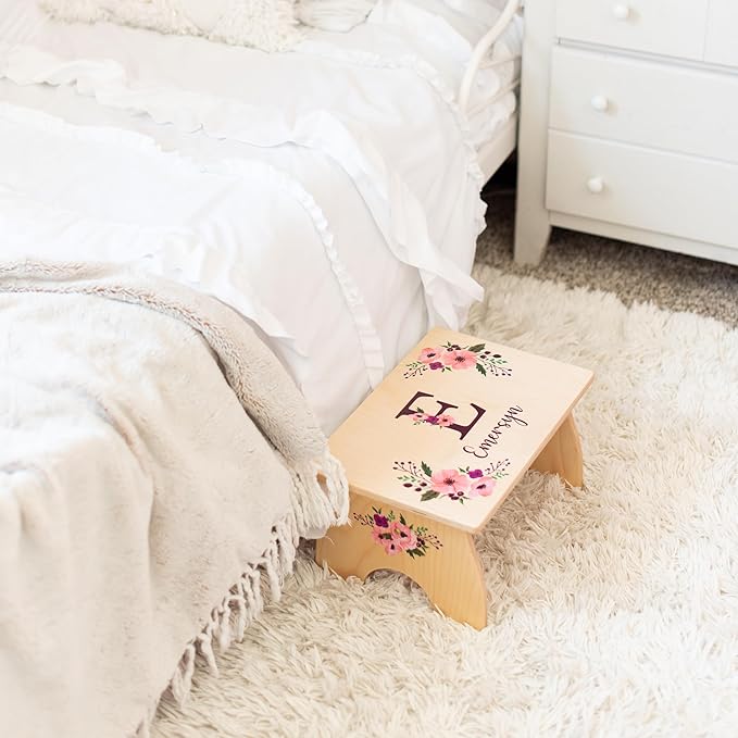 Floral Step Stool for Toddlers- Personalized Wood Kids Step Stool with Name for Kitchen Sink, Bathroom, Potty Training, Kitchen Sink- Sturdy and Safe- Made in USA by BloomOwl (Floral- Botanical)