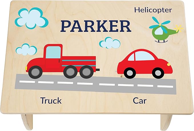 Step Stool for Toddlers- Personalized Wood Kids Step Stool with Name for Kitchen Sink, Bathroom, Potty Training, Toilet, Kitchen Sink- Sturdy and Safe- Made in USA by BloomOwl (Transportation)