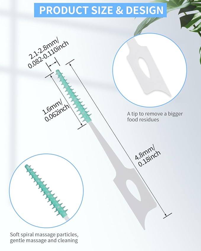 - Thoughtful Design: Our interdental brushes between teeth are designed with your comfort in mind, a flexible brush head to reach even the most challenging spots. High-quality bristles ensure gentle yet effective cleaning to help prevent gums disease and cavities