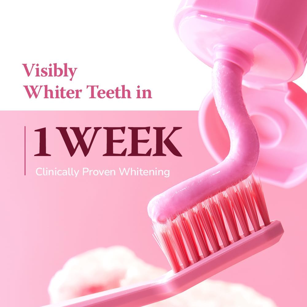 - [2.9X TONE-UP EFFECT IN JUST 1 USE] Experience instant brightness with our Pink Intensive Whitening Toothpaste, which instantly neutralizes stains and eliminates yellow tones in just 1 time use.