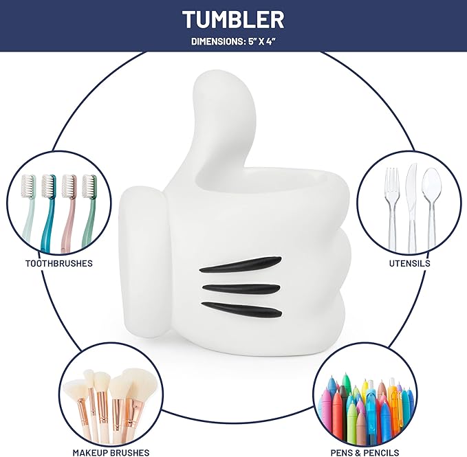 - RELIABLE & VERSATILE - This bathroom set offers an effortless upgrade to your bathroom organization, with the flexibility to extend its functionality beyond bathroom storage. Use the sponge holder as a soap dish, repurpose the soap dispenser for hand sanitizer on your office desk, or use the tumbler and toothbrush holder to store pens and pencils. No matter the scenario, this set infuses everyday essentials with a delightful twist, ensuring your space remains tidy and stylish.