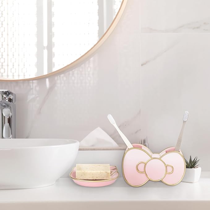 - WELL-CRAFTED DESIGN - Bring the iconic adorableness of Hello Kitty into your bathroom with this charming set including a toothbrush holder and soap dish, both featuring classic Sanrio Hello Kitty designs perfect for any fan!