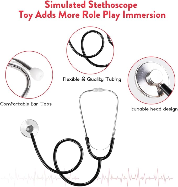 - Simulated Stethoscope Toy Adds More Role Play Immersion. Playing the stethoscope toy not only alleviates their fear of going to the doctor, but also helps the child-parent interaction. Flexible tubes, soft ear tabs and quality head design make this doctor's stethoscope toy durable.