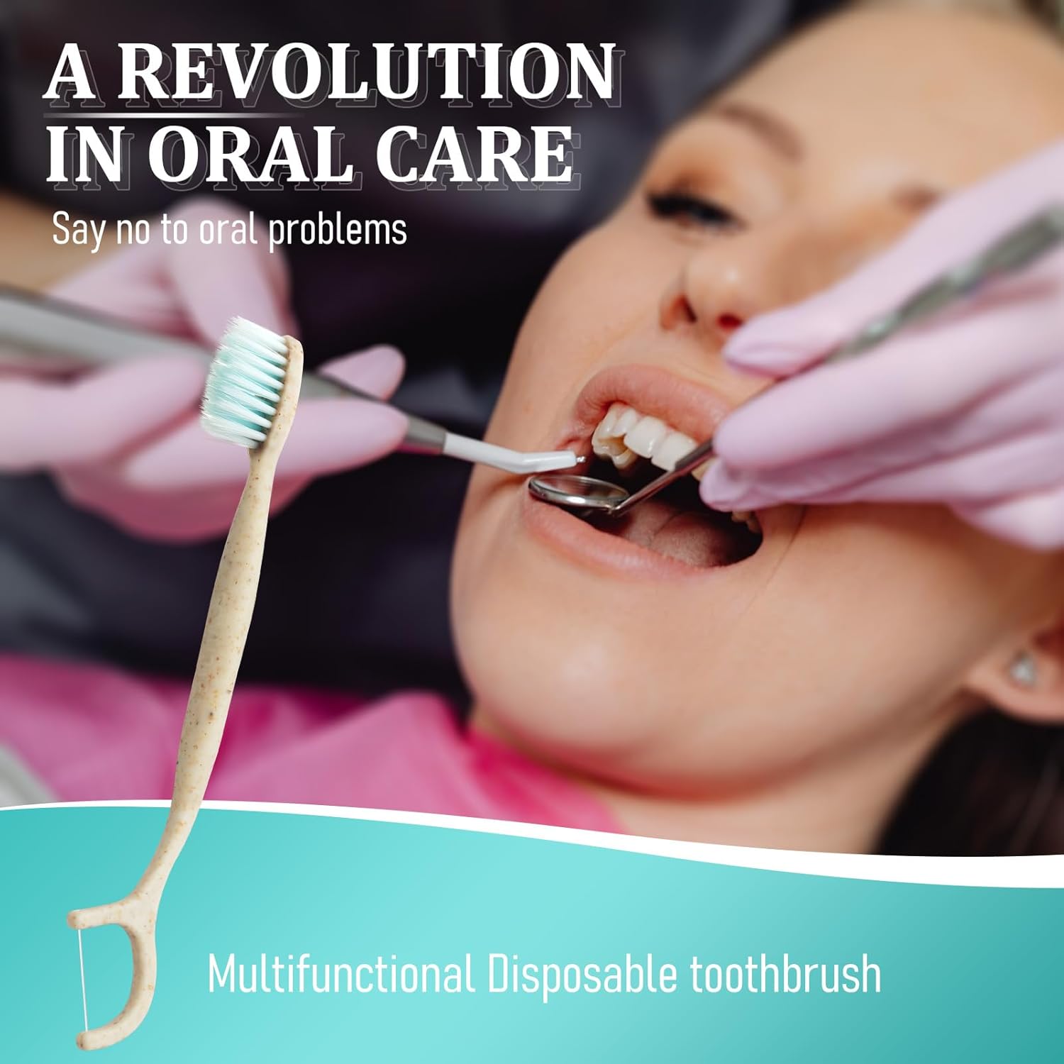 - 4-in-1 Travel Toothbrush : This is a multi-functional portable travel toothbrushes, containing a toothbrush, dental floss picks, toothpick and tongue scraper. This travel toothbrush set easily removes food residue from the surface of your teeth to maintain healthy gums and fresh breath.