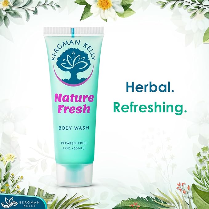 BERGMAN KELLY Travel Size Body Wash (1 fl oz, 100 PK, Nature Fresh), Delight Your Guests with a Refreshing & Soothing Hotel Body Wash, Quality Mini and Small Size Guest Hotel Toiletries in Bulk