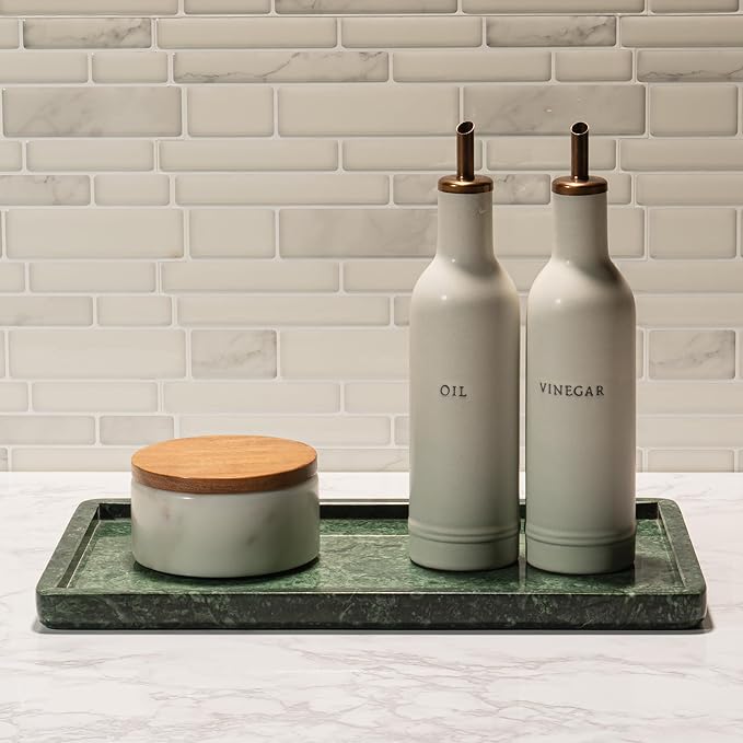 - Each Piece is Unique: Each green vanity tray features distinctive natural marble veining, offering an elegant touch to your bathroom or kitchen countertop for that one-of-a-kind look.