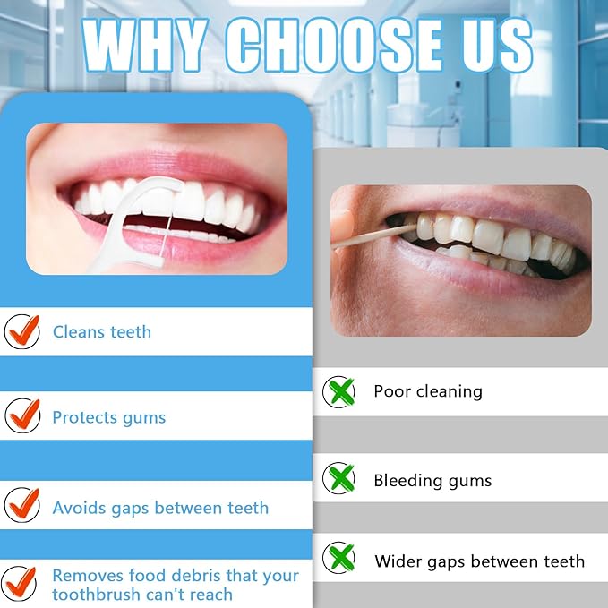 - 【Oral Care On Hand】This dental floss picks remove bits of dental debris that can't be reached by a regular toothbrush, helping to prevent cavities and keep your teeth clean. Deep clean between teeth and gums!