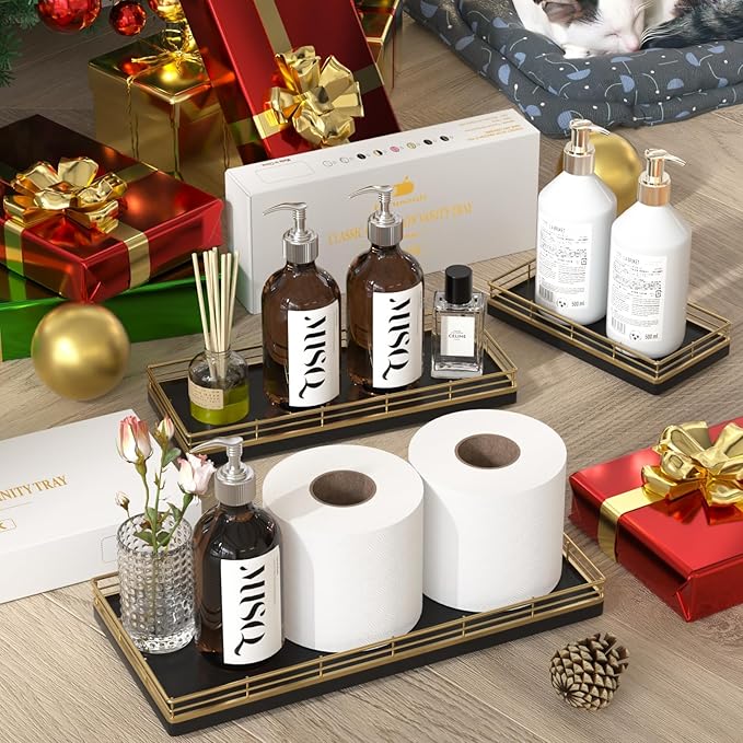 - Considerate Design: This bathroom trays for counter is ready to use without any installation required; Upgraded embedded welding design enhances stability and aesthetics; Raised edge prevent items from slipping; 4 non-slip pads on the bottom protect surfaces from scratches; Simplify your cleaning routine with just a quick wipe-down using a damp cloth, saving you time and hassle