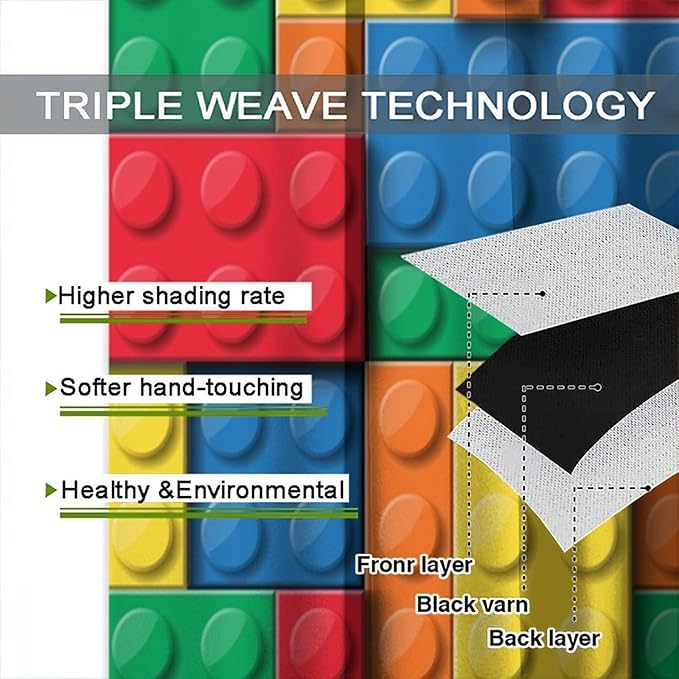Kids Building Blocks Toy Curtains Children's Room Abstract Outline Colorful Plastic Toys Geometric Bricks Print Curtains for Boys Girls Nursery Curtains 63x63 Inches 2 Panels