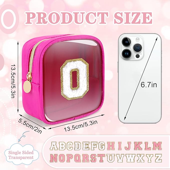 - 👝【High Quality & Multi-Size and Color】The letter patch pouch are made of TSA-approved clear PVC & nylon, waterproof, wear-resistant, durable, and easy to clean, skin-friendly and comfortable, with smooth metal zipper can be opened and closed easily, the see through design allows you to see the items of the bag clearly and access it quickly. We offer both 2 styles and multiple colors: hot pink, white,pink, beige, cyan and cute 26 chenille letters for you to choose from!