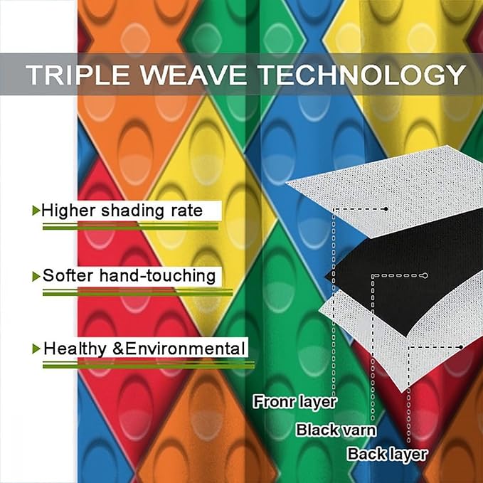 Kids Building Blocks Toy Curtains Boy Girl Room Printed Curtains Abstract Colorful Bricks Children's Nursery Blackout Curtains 63x63 Inches 2 Panels