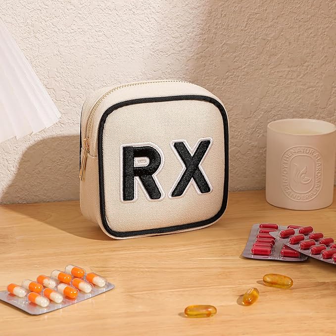 - [Product Size]: Our canvas RX Mini bag measures 5×4.5×2.4 inches, Meds bag measures 10×5×2.4 inches,easy to carry. Great for travel or to toss in a gym bag, backpack, purse etc.Its compact and lightweight design makes it easy to pack and carry with you on the go, whether you're traveling or just running errands.