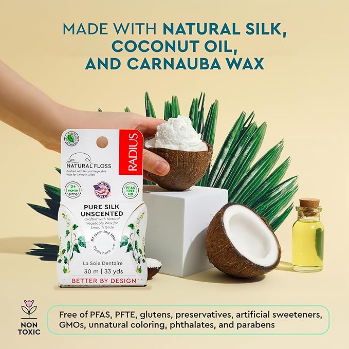 RADIUS Natural Unscented Silk Dental Floss 33 Yards Vegan & Non-Toxic Oral Care Boost & Designed to Help Fight Plaque Clear - Pack of 1