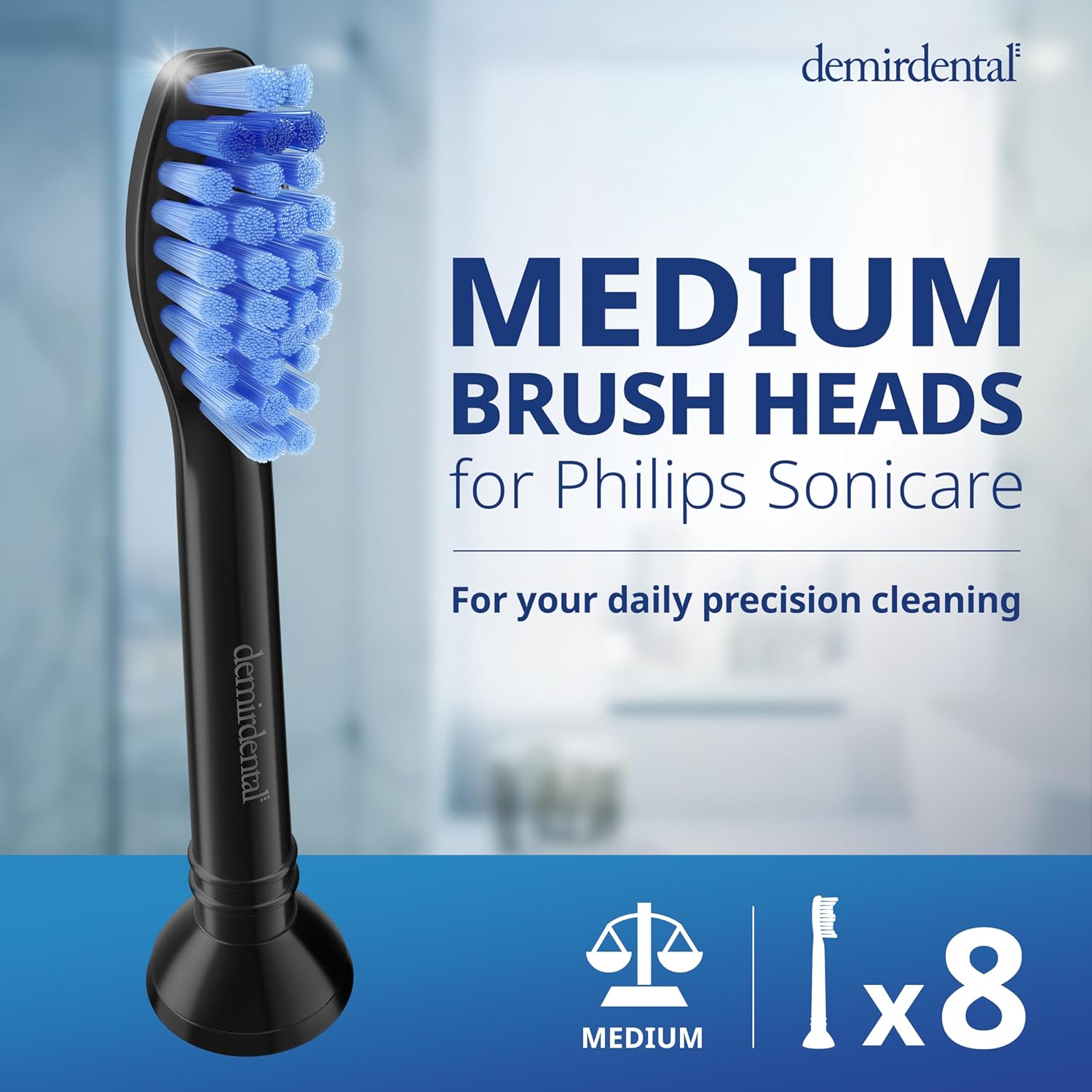 Replacement Heads - Compatible with Philips Sonicare Replacement Heads - Medium Replacement Toothbrush Head - Replaces HX6015/03 SimplyClean Toothbrush Heads - Black - 8 Pack